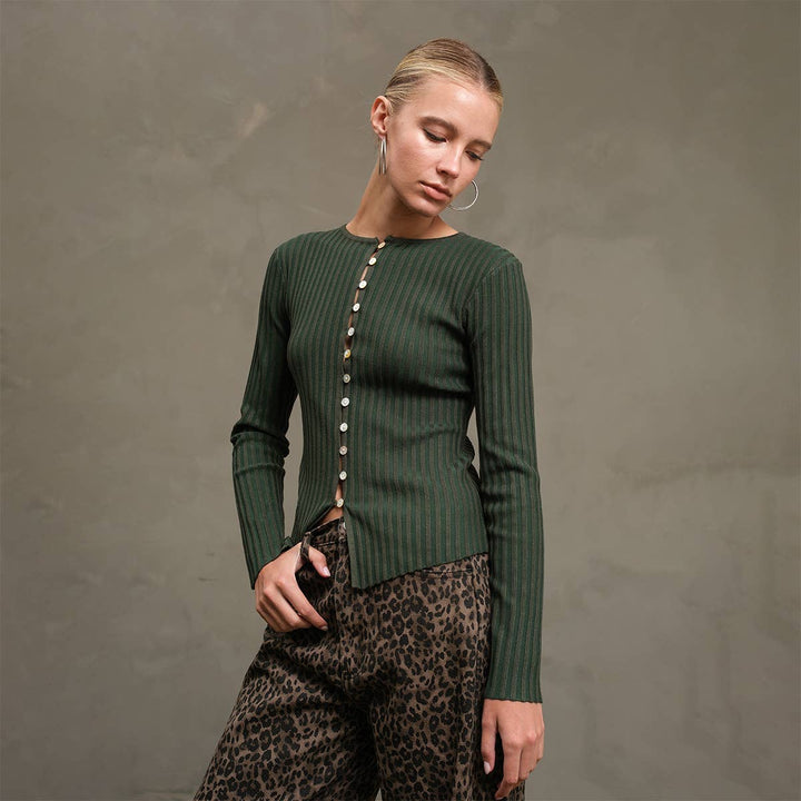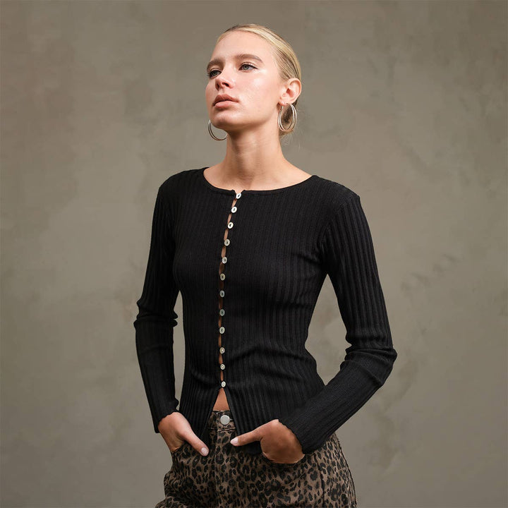 A soft, flattering knit button-up cardigan top designed to create a sleek and slimming silhouette. - Designed with a front button closure. - Model wears size S - Model height: 174 cm 100%VISCOSE