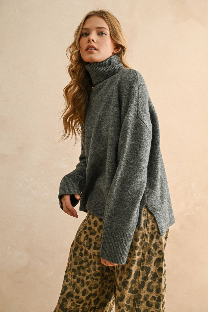 TURTLE NECK LONG SLEEVE SWEATER TOP OH